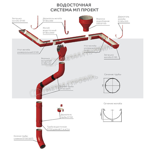 Держатель желоба Металл Профиль ПРОЕКТ D185х300 Ral 7024